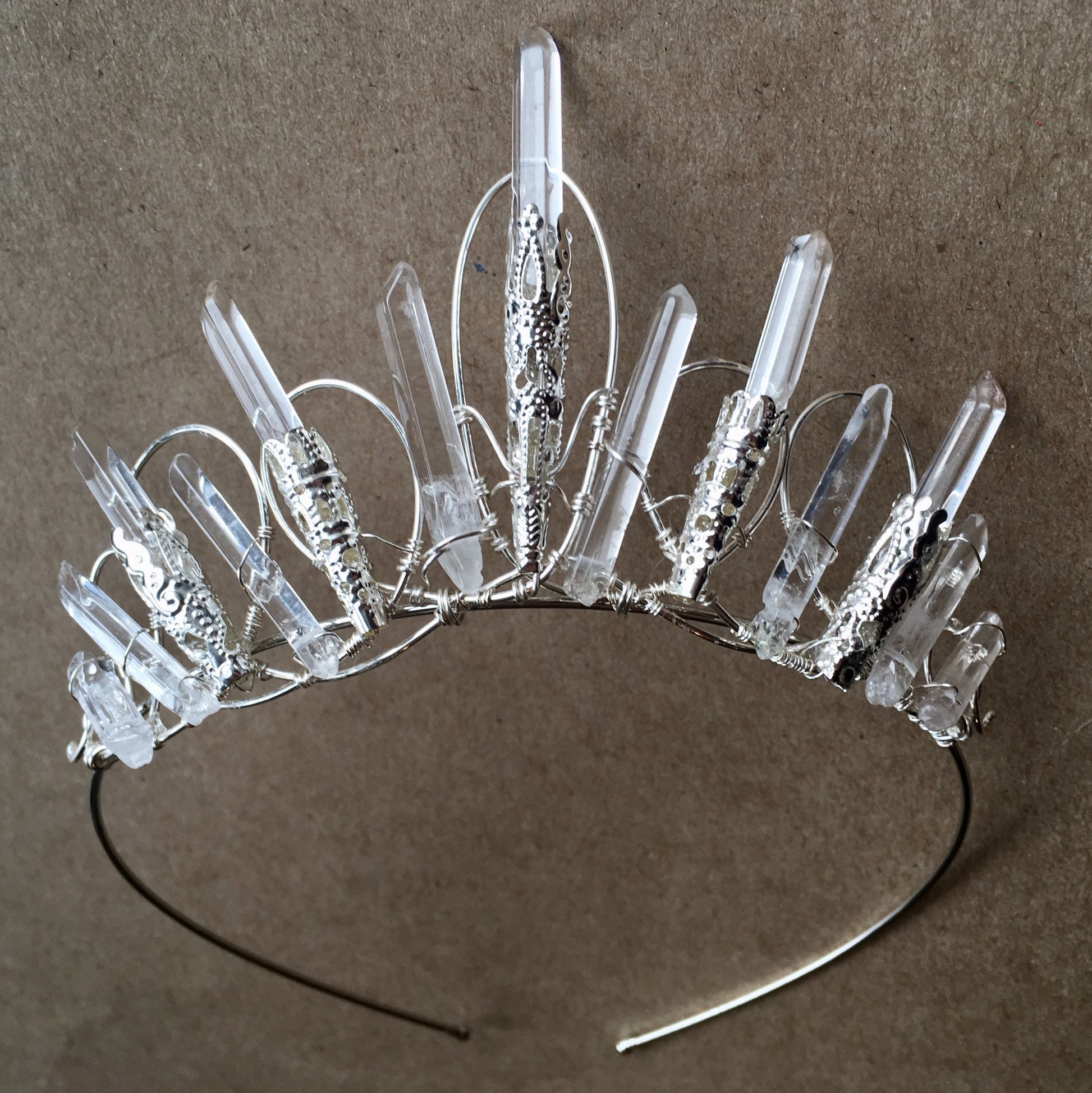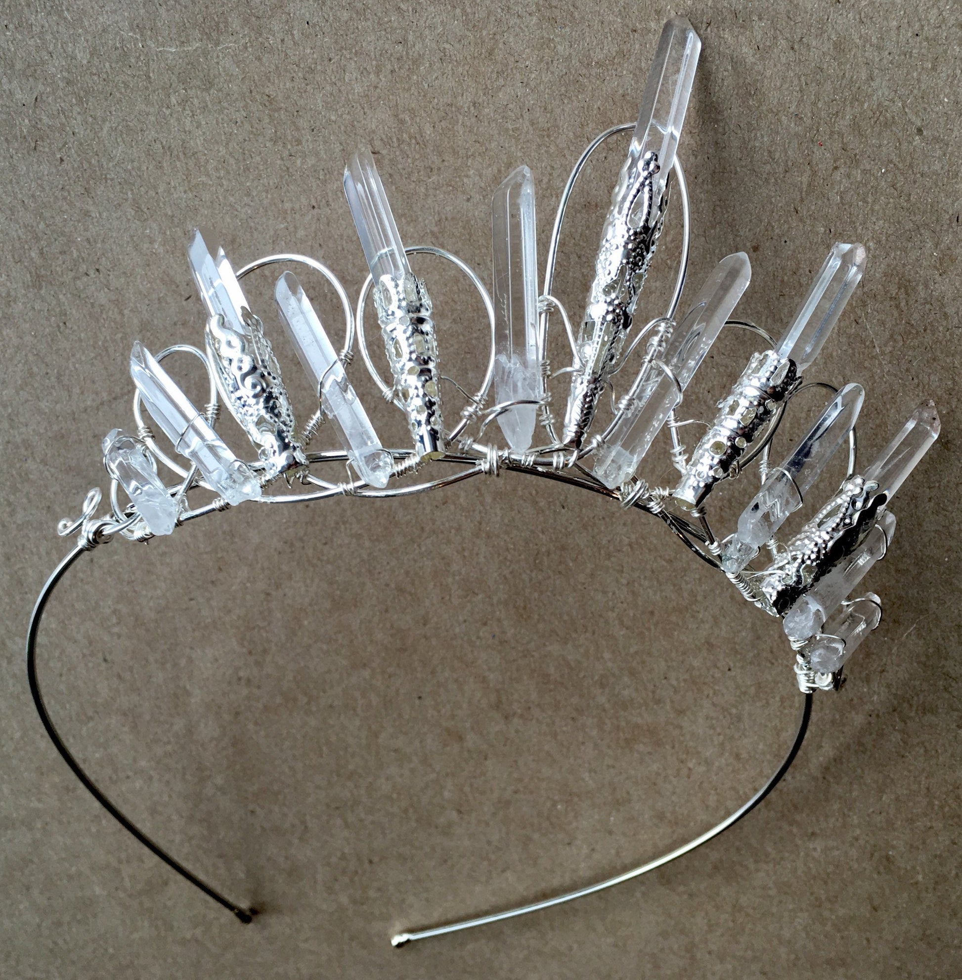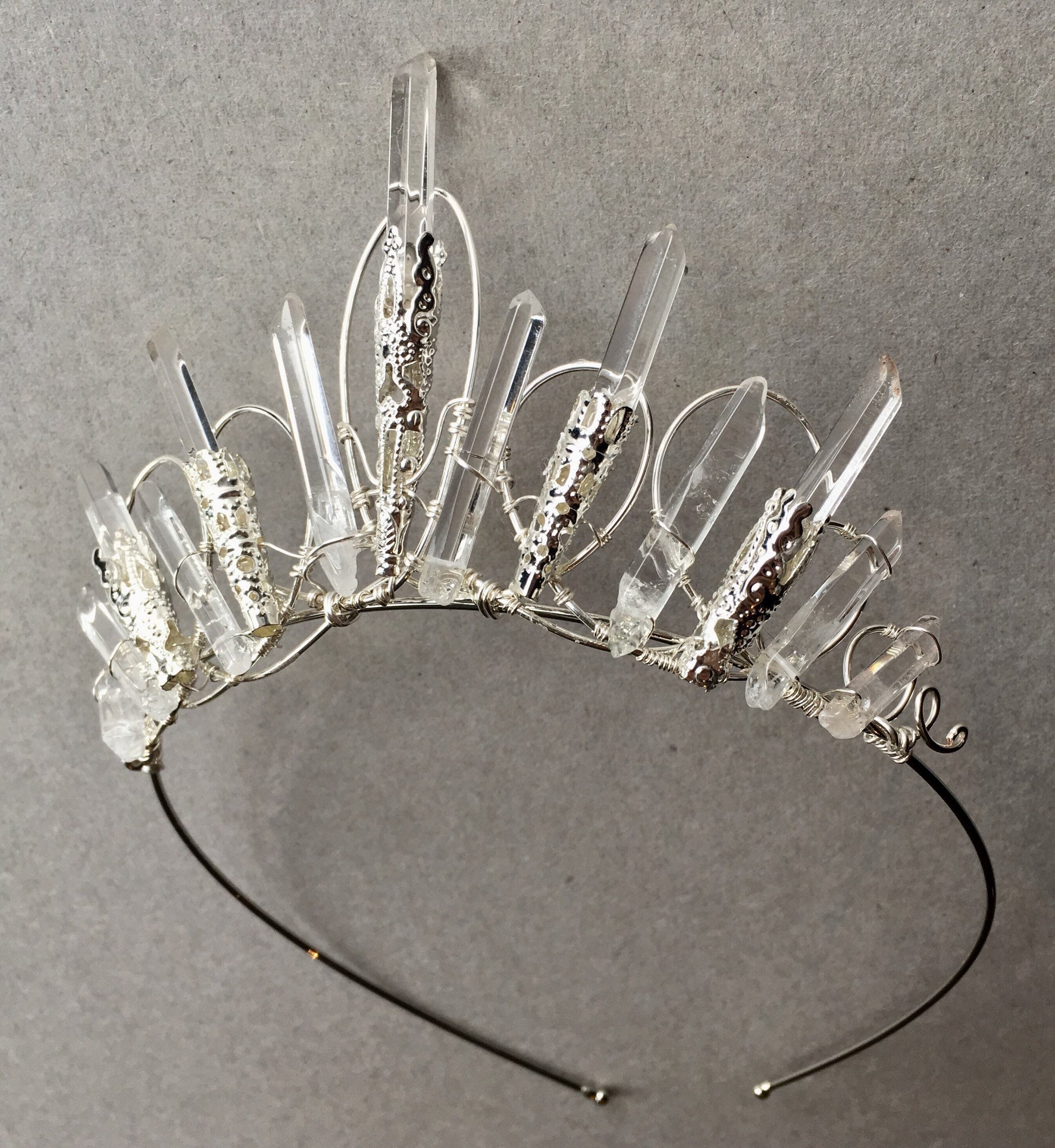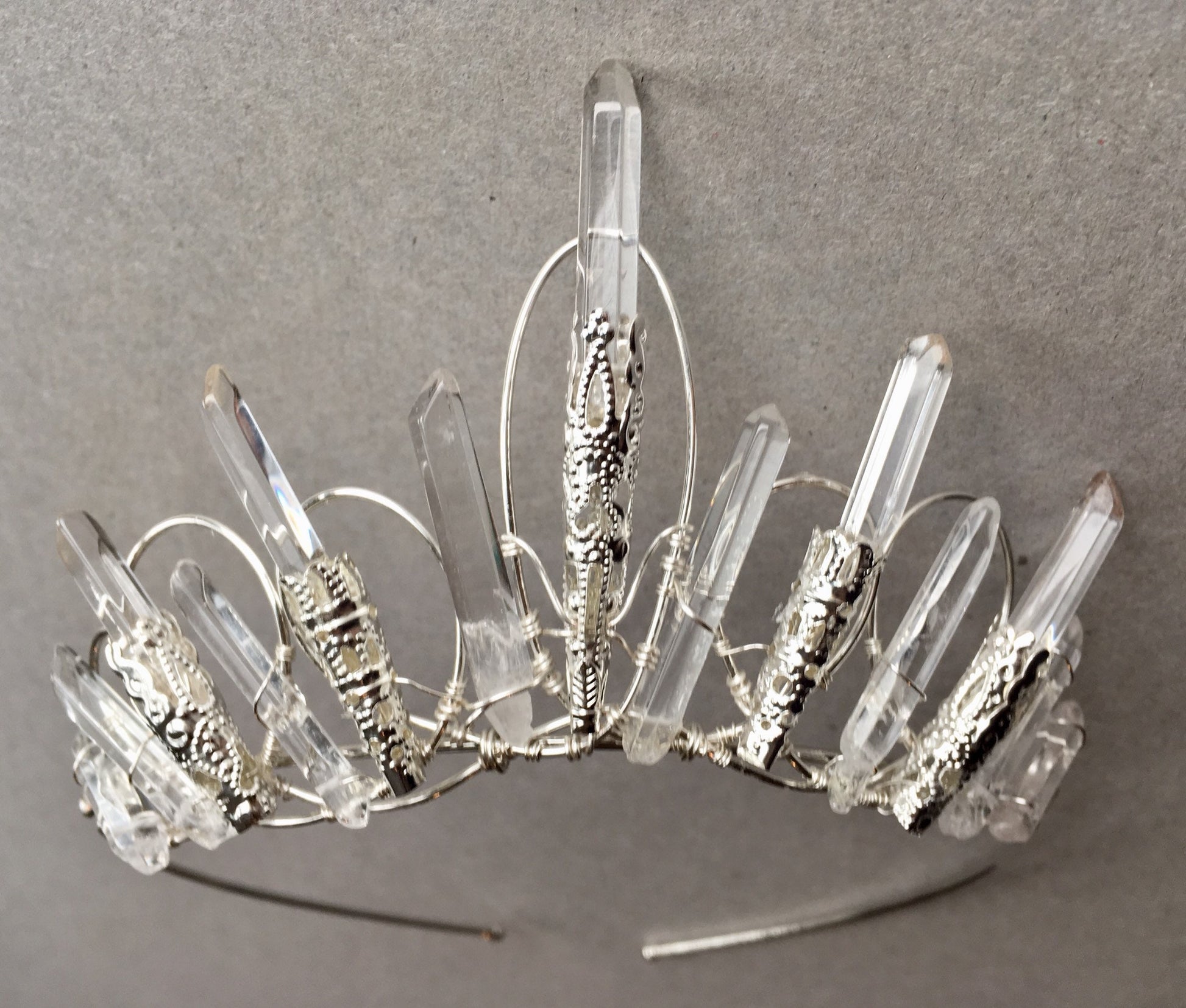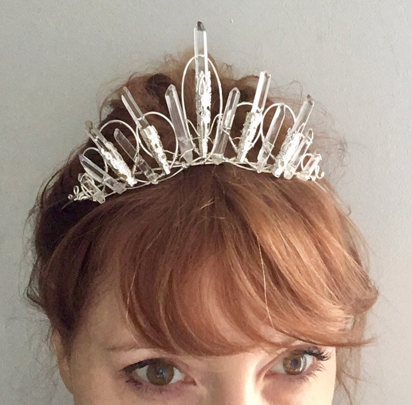 One of our daintiest tiaras. Beautiful art-nouveau style loops adorned with crystal quartz polished shards. Available in silver, gold, copper, antique brass or rose gold. If you need a different stone - just ask!