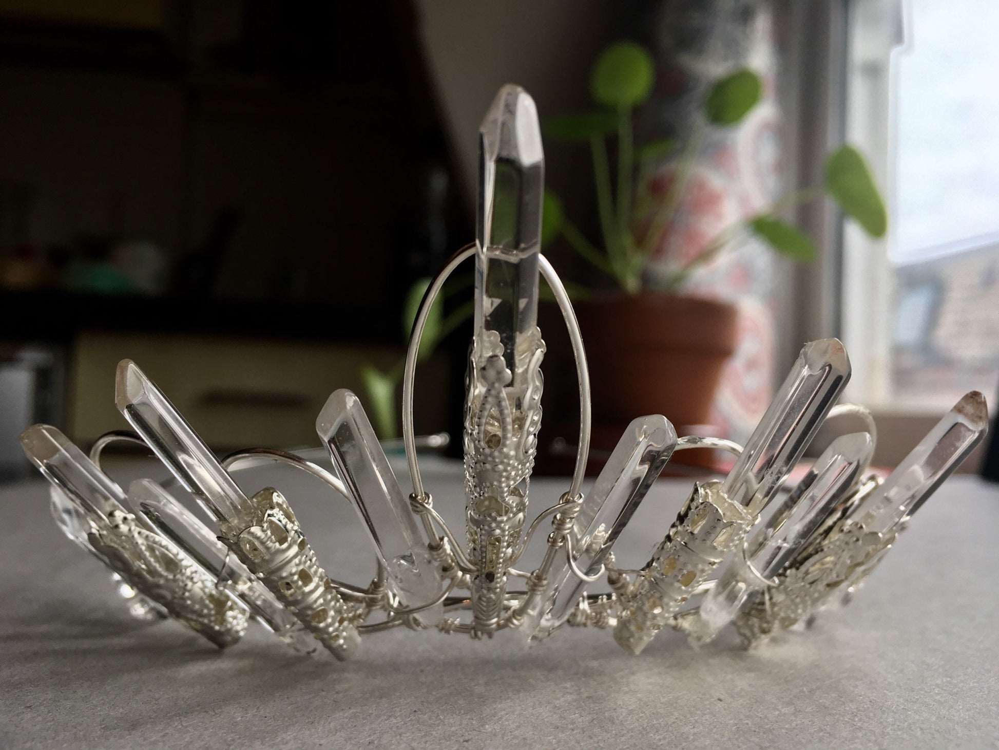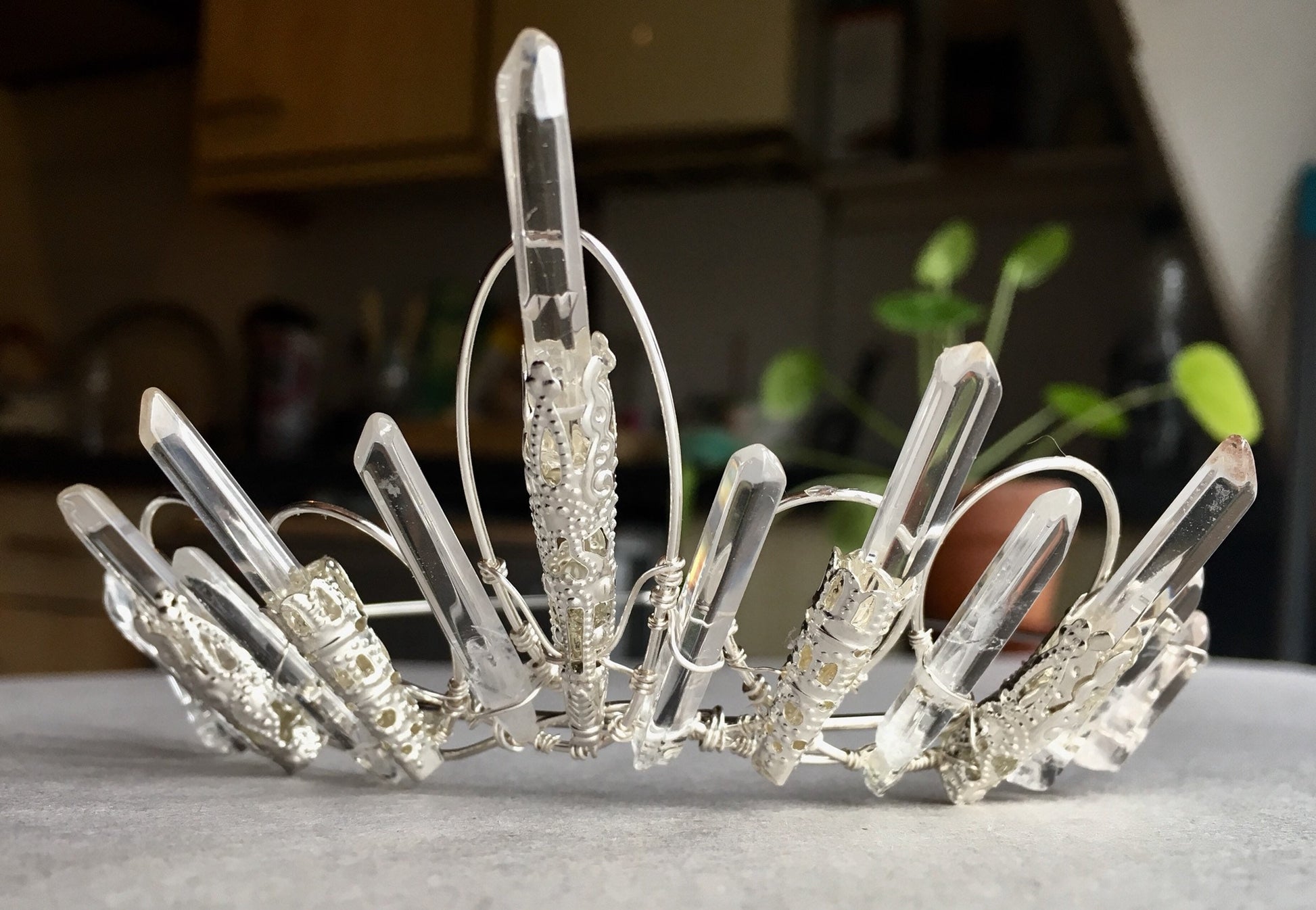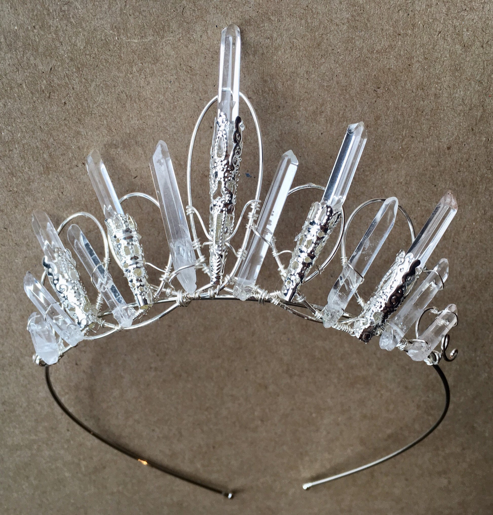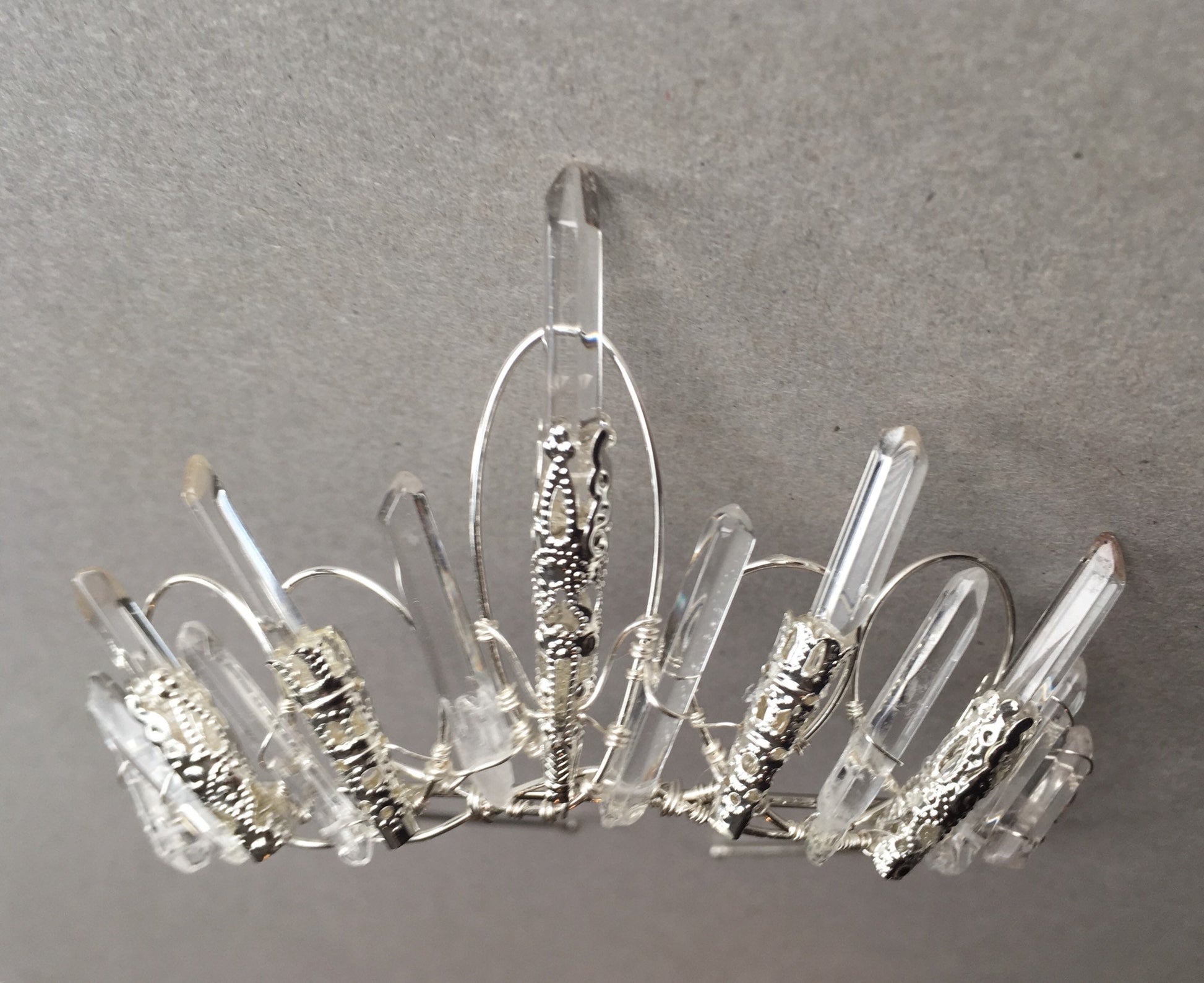 One of our daintiest tiaras. Beautiful art-nouveau style loops adorned with crystal quartz polished shards. Available in silver, gold, copper, antique brass or rose gold. If you need a different stone - just ask!