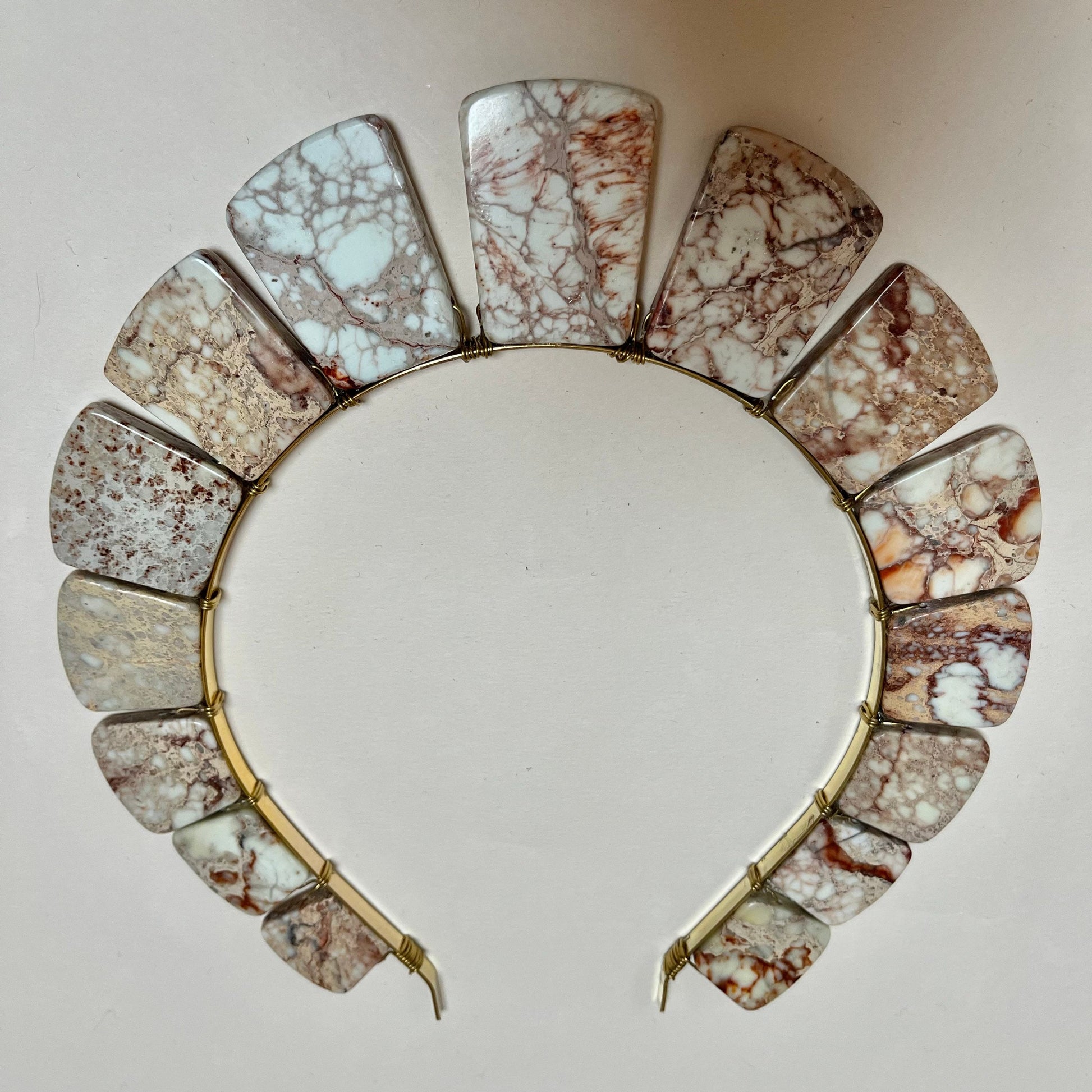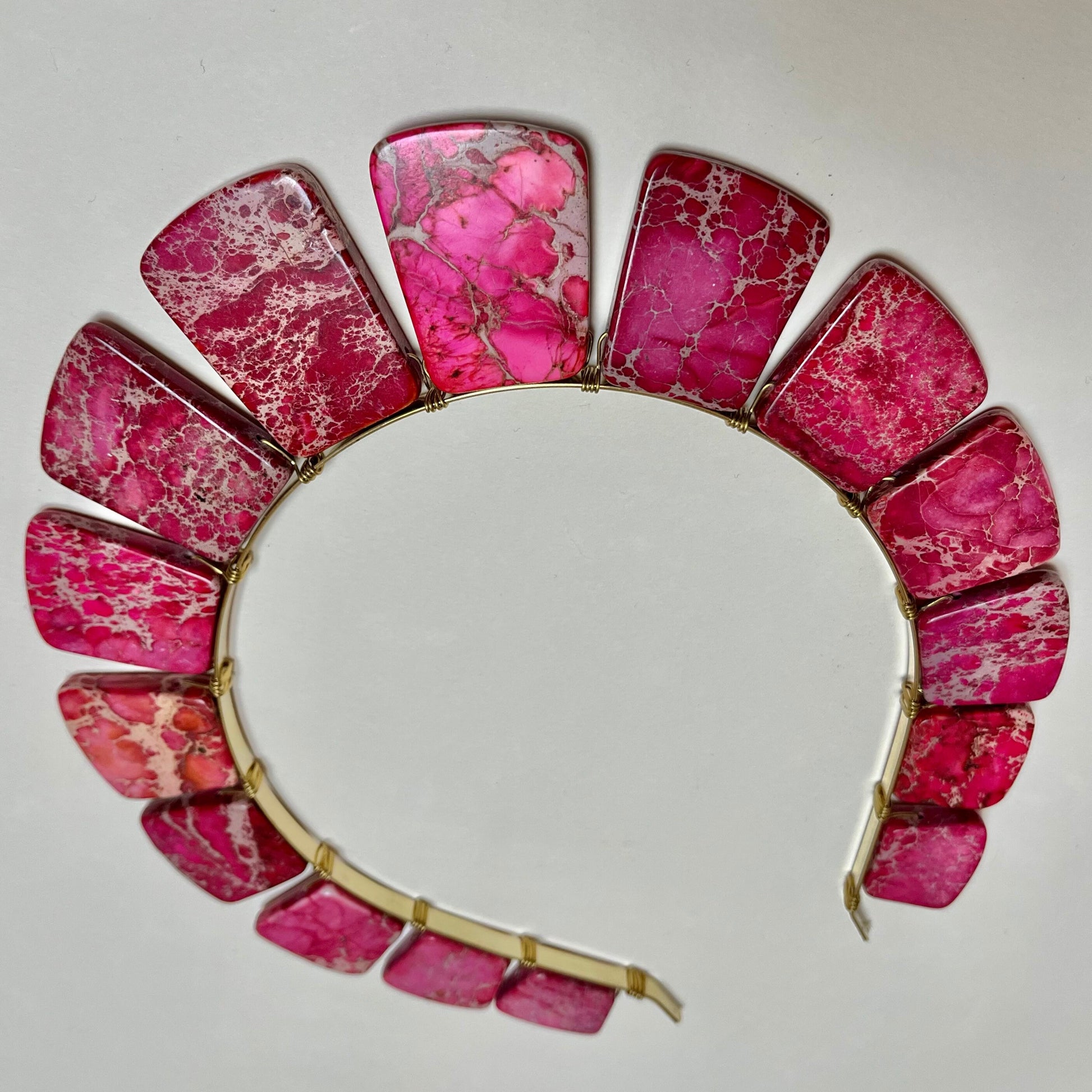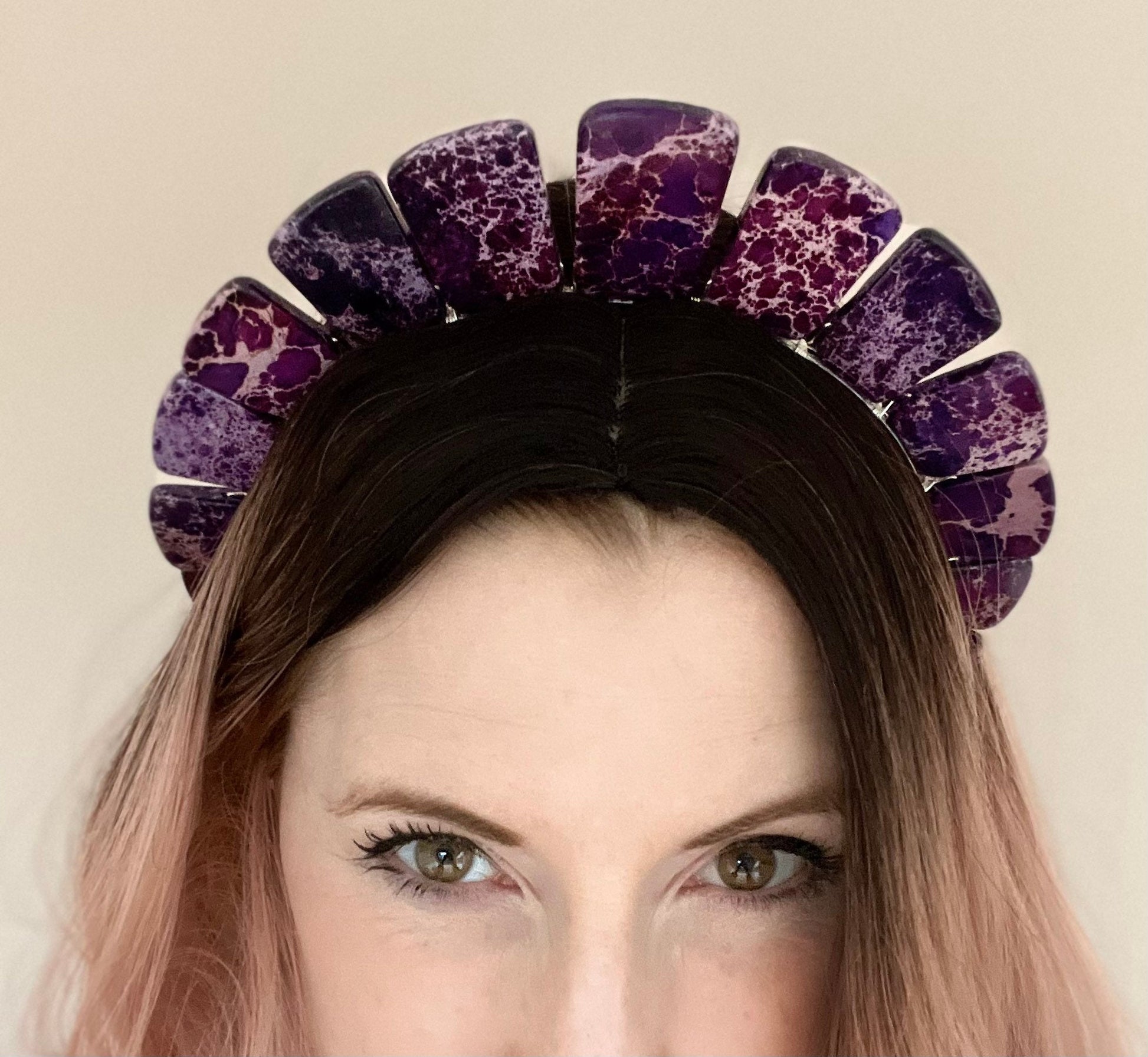 Available in all the colours of the rainbow (and ivory!) this sea Jasper halo crown is the perfect statement piece.