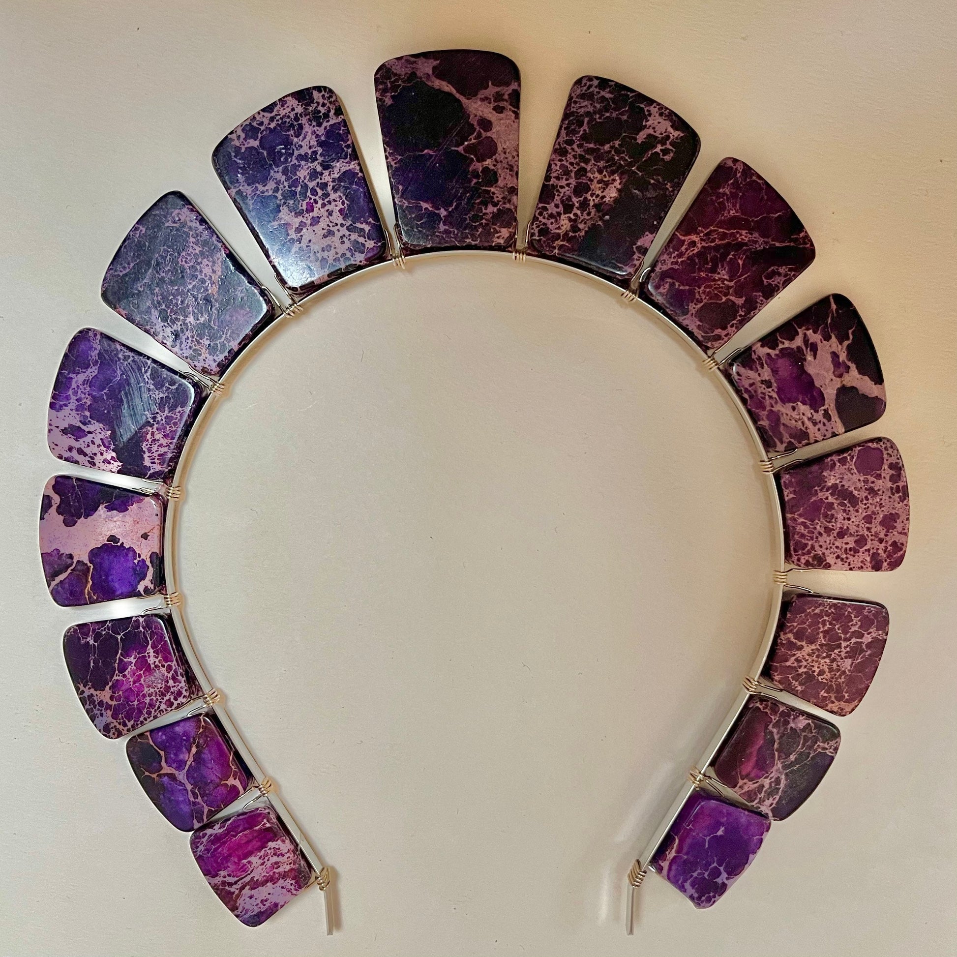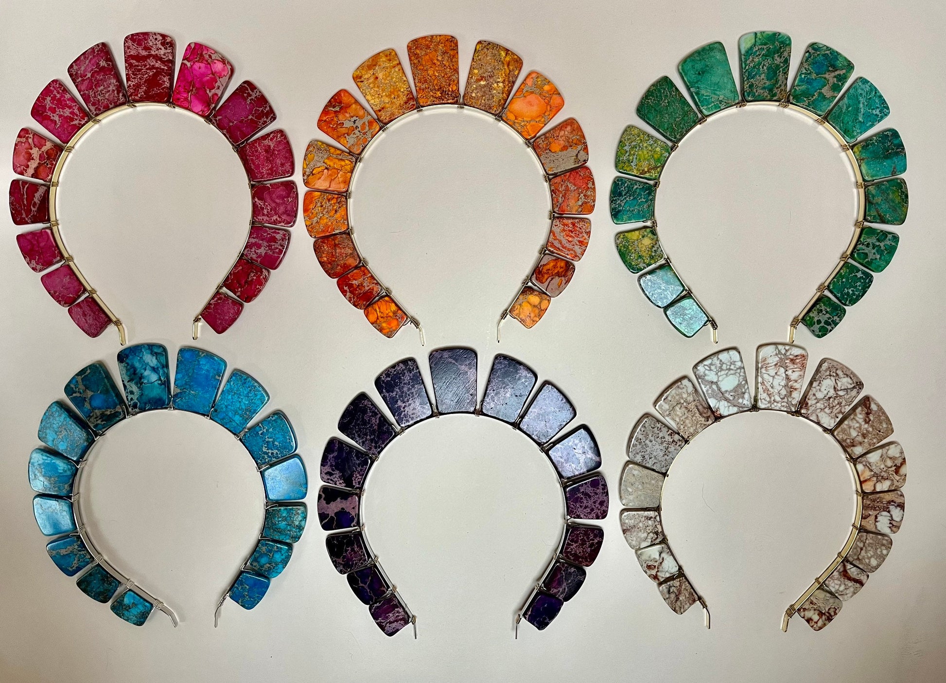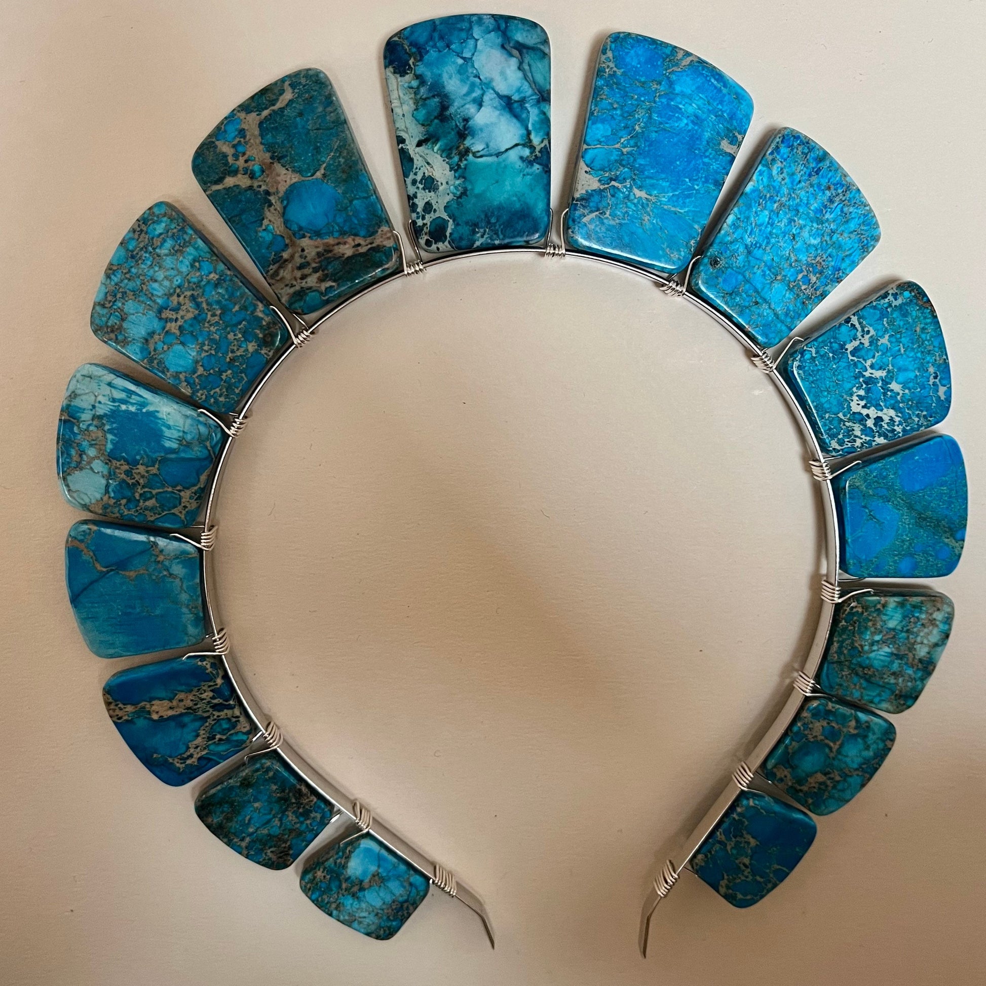 Available in all the colours of the rainbow (and ivory!) this sea Jasper halo crown is the perfect statement piece.